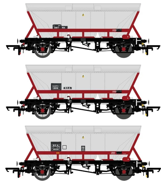 Pack of three HCA Wagons in EWS Maroon. Running numbers: 351077,351119, 354295.