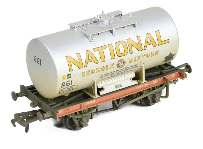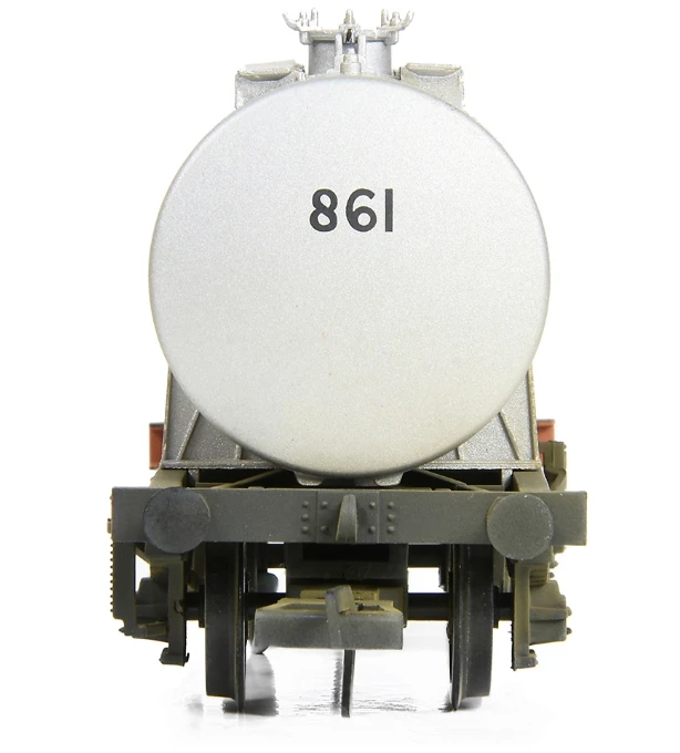 Portraying one of the distinctive Anchor Mounted tanks, No. 861 is a Class A wagon used to transport flammable liquids and therefore is decorated in the standard silver paint scheme that was mandatory for Class A tank wagons during the period following World War Two. Along with the attractive National Benzole branding, the model also features a full complement of lettering and safety warnings β complete with a light weathered finish.