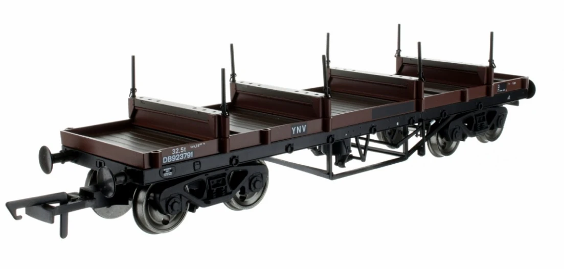 Based on diagram 1/479 Two Lots were built in Ashford by BR during 1961 β 1962, a total of 1200 wagons were built. Constructed to a modern design, on David & Lloyd bogies, this wagon was the shortest of the bogie bolsters at just over 32 feet in length. The reasoning behind equipping such a short vehicle with bogies was that a higher load could be carried due the increased axle count. Though originally constructed as part of BRs regular βpoolβ of commercial wagons, they quickly found favour with the Engineers Department as well as many other uses including conversions to steel coil carriers and continuous welded rail transportation amongst other uses.
