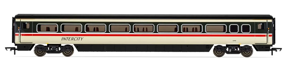 Built at Metro-Cammell’s Washwood Heath factory, 314 Mk4 coaches were produced between 1989 and 1992. They were built specifically for use on the newly electrified East Coast Main Line, along with hopes that a second order for the West Coast Main Line would be placed at a later date, although this second order never transpired. Mk4 coaches featured many improvements over the Mk3s such as push-button operated plug-type doors, fully sealed gangways and a designed top speed of 140mph. Much of the Mk4 design was based upon the Advanced Passenger Train. In particular, Mk4 coaches feature sides profiled to allow a tilt of up to 6° with newly fitted tilting bogies.