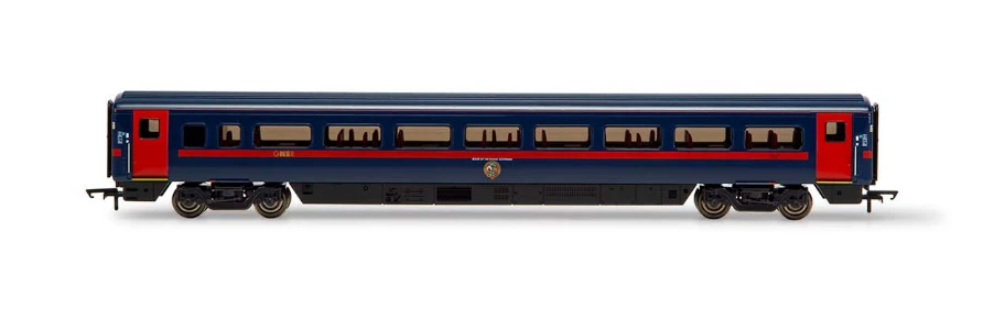 Built at Metro-Cammell’s Washwood Heath factory, 314 Mk4 coaches were produced between 1989 and 1992. They were built specifically for use on the newly electrified East Coast Main Line, along with hopes that a second order for the West Coast Main Line would be placed at a later date, although this second order never transpired. Mk4 coaches featured many improvements over the Mk3s such as push-button operated plug-type doors, fully sealed gangways and a designed top speed of 140mph. Much of the Mk4 design was based upon the Advanced Passenger Train. In particular, Mk4 coaches feature sides profiled to allow a tilt of up to 6° with newly fitted tilting bogies.