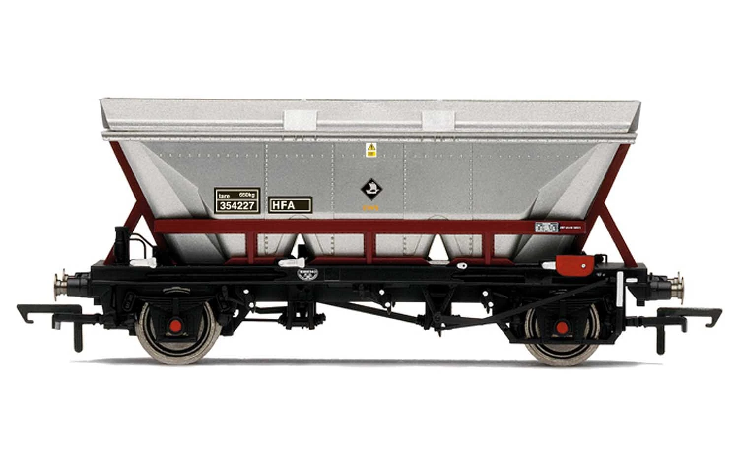 Built from 1964 to 1977, HAA wagons were built as method to move coal more efficiently, particularly with the aim of improving to supply of coal to power stations. It was intended that trains of these wagons could run in a continuous loop from the colliery to the power station and back, with machinery I place to allow loading and unloading at slow speeds. In reality it was often the case that the infrastructure to allow this type of running did not exist, particularly at the collieries, but nonetheless these wagons greatly improved coal transfer. With the decline of Britain’s coal industry these previously extremely common wagons have now become extremely rare with most having been either scrapped or rebuilt as another form of wagon. Based upon the successful HAA wagon, the HFA design added an aerodynamic canopy designed to stop coal-dust from escaping.