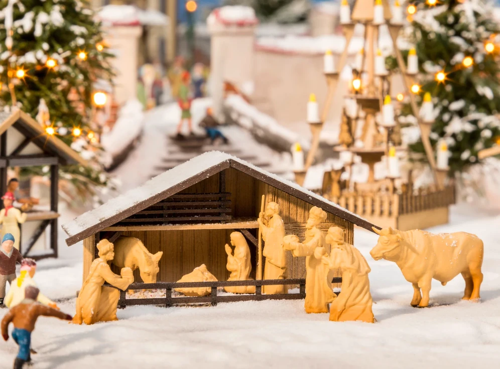 Every year, people look forward to a peaceful lead-up to Christmas with loved ones. The “Christmas Market Nativity Scene with Wood Look Figures”, which tells the renowned Christmas story of Mary, Joseph and baby Jesus, should naturally not be missing. The nativity scene is often presented in high-quality sculptures at Christmas markets. Likewise, this is now possible with the NOCH “Christmas Market Nativity Scene with Wood Look Figures” among the Laser-Cut minis. Install this lovingly recreated manger in your wintery scene and conjure up even more of a Christmassy atmosphere. Getting into the Christmas spirit is guaranteed here, as people amble through the Christmas market with their loved ones past lots of stalls bearing treats and the mighty Christmas manger.
